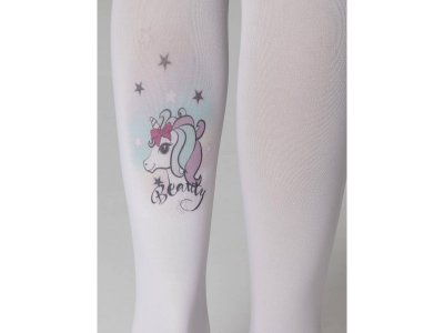 · 50 Den · плотные и эластичные · с микрофиброй · принт «единорог» на одной ножке · удобный эластичный пояс · комфортный плоский шов.