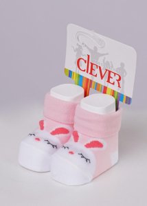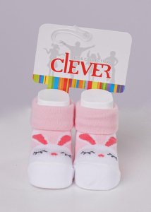 Милые носочки для новорожденных, на отвороте, с вывязанным рисунком Зайка, надеты на маникен-ножку.