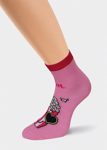 Стильные носки для девочки, с изображением рисунка поп-корна. Выполнены из мягкого трикотажа, что не вызывает дискомфорта при носке, отлично сидят на ножке.