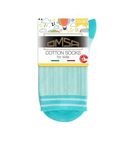 Носки детские летние Calzino 21C00 от OMSA KIDS из высококачественного гребенного хлопка. Благодаря специальной технике вязки, которая визуально напоминает мелкую сеточку, обладают повышенной воздухопроницаемостью. Волокна эластана и полиамида увеличивают износостойкость и прочность. Превосходно облегают благодаря удобной резинке. Кеттельный (плоский) шов на мыске создает ощущение комфорта и легкости в течение всего дня.