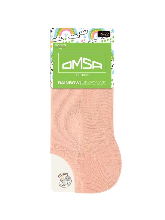 Носки детские короткие CALZINO 21C01 тм OMSA KIDS. В составе - высококачественный эко хлопок, который позволяет коже дышать и обеспечивает детским ногам комфорт в течение всего дня.Удобная резинка мягко облегает, не оказывает давления и не пережимает ногу