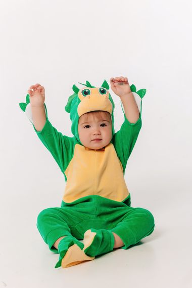 Карнавальный костюм Дракоша из серии "Ладушки-игрушки" для малышей до 1 года. Яркий и озорной костюм для маленьких непосед. Представлен в виде желто-зеленого комбинезона с мордочкой дракона на капюшоне.
