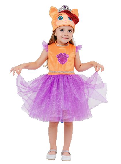 Карнавальный костюм Котенок Жемчужинка для девочек - образ любимого питомца Русалочки Ариэль из мультсериала "Королевские питомцы". Комплект костюма состоит из яркого пышного платье и шапочки-маски. Костюм лицензирован (Дисней).