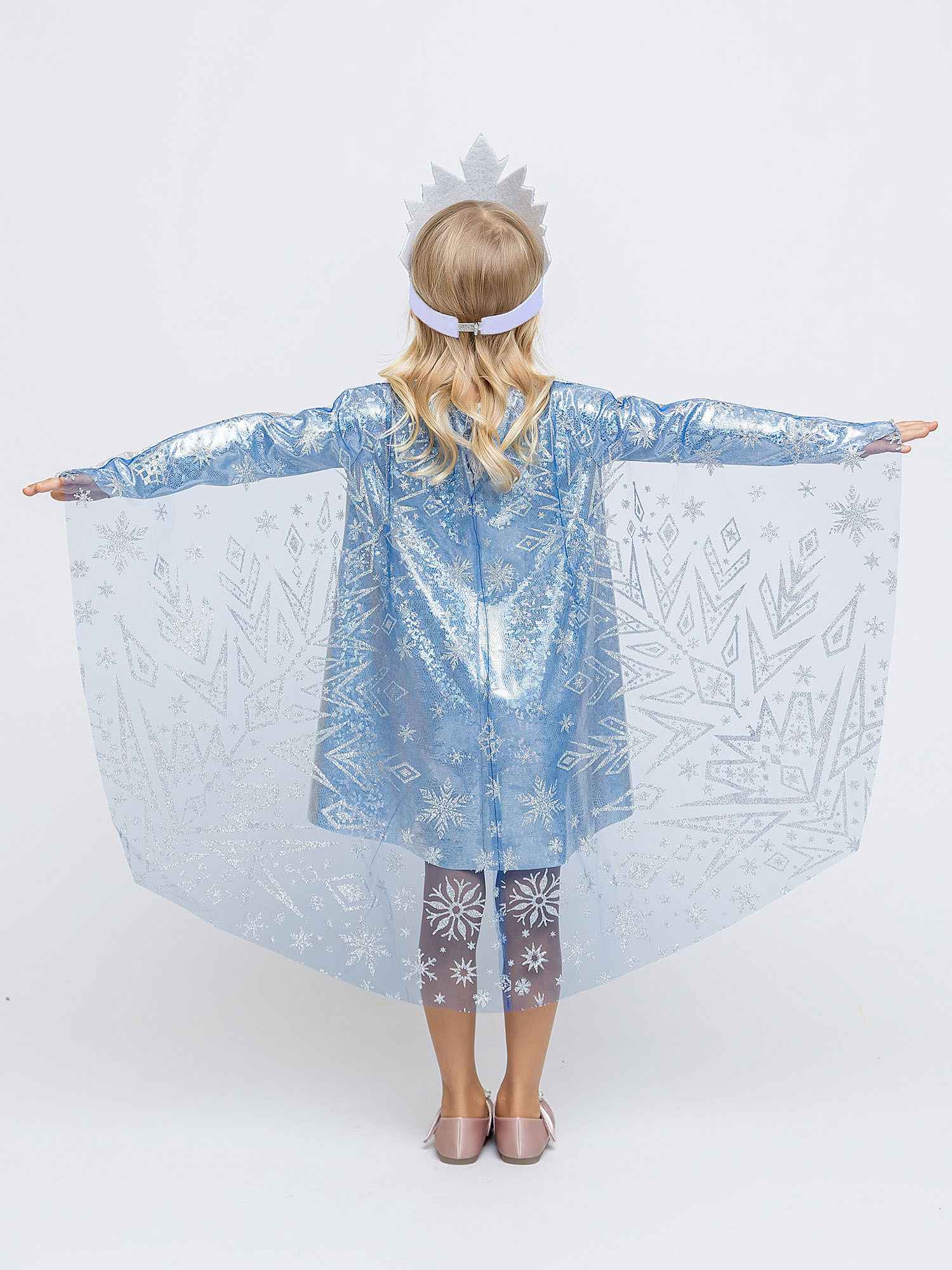Карнавальный костюм для девочки Льдинка. В комплекте серебристое платье с накидкой и блестящая корона. Чудесное праздничное платье может стать лучшим подарком маленькой девочке на Новый год и другие праздники.
