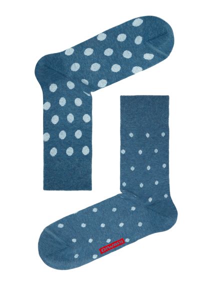 Всесезонные эластичные мужские носки из хлопка, с двойной анатомической резинкой, с рисунками с необычными цветовыми акцентами.