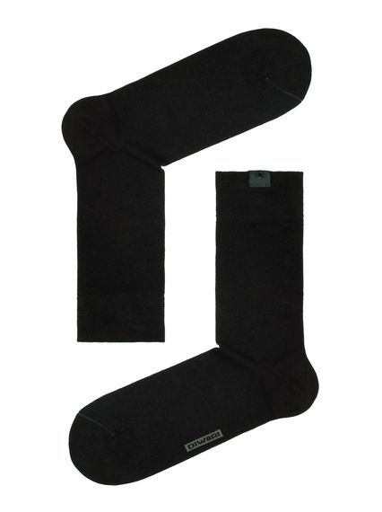 Классические всесезонные эластичные мужские носки из хлопка, с двойной анатомической резинкой, однотонные. На резинке носков кнопка, позволяющая перед стиркой носки скрепить в пару. Носки после стирки всегда останутся в паре.