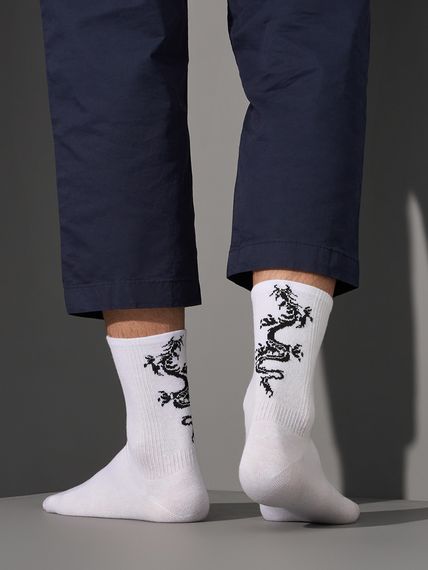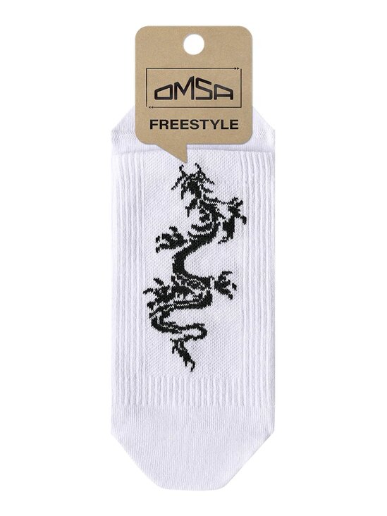 Носки унисекс OMSA с рисунком в виде дракона на резинке. Изготовлены из мягкого хлопка, который обладает высокой воздухопроницаемостью, хорошо впитывает влагу, приятно ощущается и подходит даже для самой чувствительной кожи.