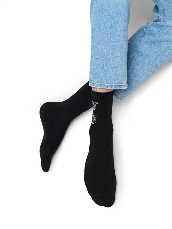 Носки унисекс OMSA с трендовыми надписями «Shake it OFF» и «Don't be fake» на резинке. В составе - высококачественный хлопок, который позволяет коже дышать, отлично впитывает влагу и подходит даже для самой чувствительной кожи, и эластан, который обеспечивает превосходное облегание. Удобная резинка и кеттельный (плоский) шов на мыске создают дополнительный комфорт.