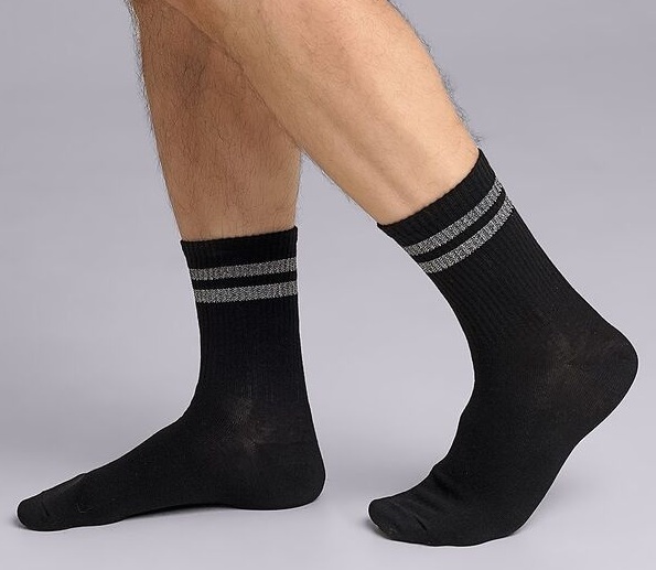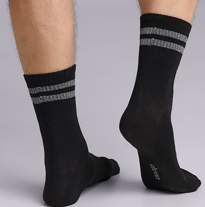 Стильный мужской носок со светоотражающими элементами.Полоски на паголенке из светоотражающей нити