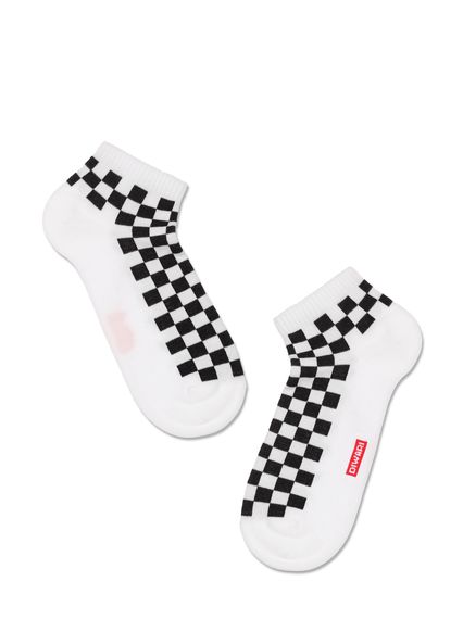 Укороченные мужские носки из хлопка, с двойной анатомической резинкой, спортивного назначения, с рисунками.