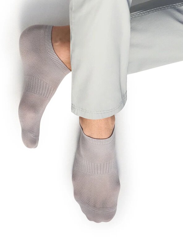 Мужские укороченные носки из высококачественного хлопка. Материал в составе отлично впитывает влагу, обладает приятной текстурой и подходит даже для чувствительной кожи. Переплетение в виде сетки обеспечивает повышенную воздухопроницаемость. Резинка удобно облегает, дополнительная перетяжка по стопе и кеттельный (плоский) шов на мыске обеспечивают оптимальный комфорт. Носки полностью повторяют анатомическую форму стопы.
