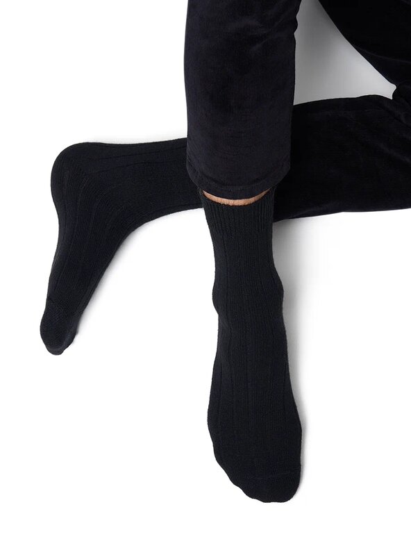 Мужские теплые носки в рубчик с комфортной резинкой. Изготовлены из шерсти, которая отлично сохраняет тепло, пропускает воздух и впитывает влагу. Добавление акрила усиливает теплосберегающие свойства, способствует сохранению формы и насыщенности цвета. Полиэстер увеличивает износостойкость и прочность, эластан обеспечивает превосходное облегание. Удобная резинка и кеттельный (плоский) шов на мыске создают максимальный комфорт.