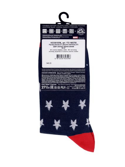 Всесезонные эластичные мужские носки из хлопка, с двойной анатомической резинкой, с разнообразными рисунками - лицензионными героями фильмов "MARVEL".