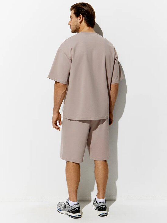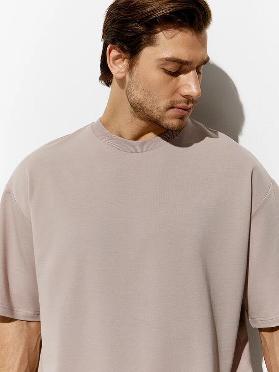Мужская футболка OVERSIZE с коротким рукавом и круглым вырезом. Горловина обработана обтачкой из трикотажного материала кашкорсе. Выполнена из высококачественного двухниточного футера. В составе трикотажного материала мягкий хлопок, который отлично пропускает воздух, приятно ощущается на теле и подходит для нежной и чувствительной кожи. Добавление эластана обеспечивает сохранение формы. Стильная и комфортная футболка для дома, отдыха и городских образов.