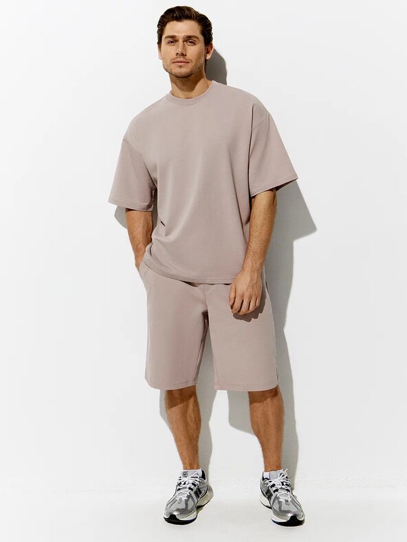 Мужские свободные шорты средней длины с боковыми карманами и поясом на резинке с кулиской. Выполнены из высококачественного двухниточного футера. В составе трикотажного материала мягкий хлопок, который отлично пропускает воздух, приятно ощущается на теле