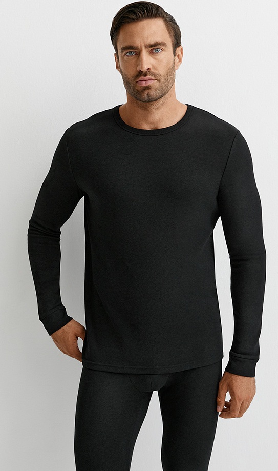 Мужской лонгслив модель "Термо" с длинным рукавом c манжетом и терморегулирующим эффектом. Изготовлен из трикотажного хлопкового материала «Интерлок», который превосходно сохраняет тепло, обеспечивает свободную циркуляцию воздуха, подходит для чувствительной кожи и приятно ощущается на теле благодаря бархатистой текстуре на внутренней стороне. Добавление полиэстера обеспечивает влагоотведение и теплообмен. Материал обладает высокой устойчивостью к растяжению и деформации, долговечен в эксплуатации и отлично восстанавливает форму. Подходит для повседневного использования зимой и в демисезонный период. Рекомендовано носить при T +5°C до -15°C.