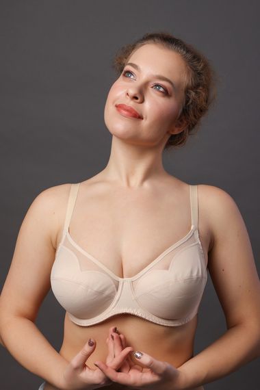 Бюстгальтер на каркасах с мягкими чашками, продублированными внутри хлопком. Красивое оформление верхней части чашек в виде лепестков и мелкая сеточка придают этой модели нарядный, слегка игривый эффект. Шикарная модель, недорогая и в то же время изысканная по дизайну. Застёжка на 4 ряда крючков. Маст хэв!