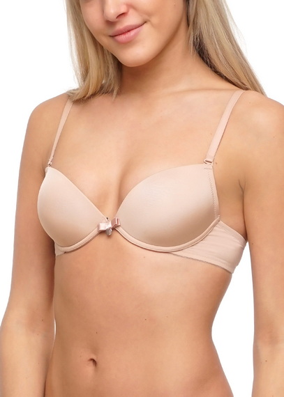 Бюстгальтер классической формы с формованной чашкой с гелевым Push-up. Детали изделия выполнены из эластичного полотна. Бретели эластичные, съемные. Центральная деталь декорирована бантиком из атласной ленты.