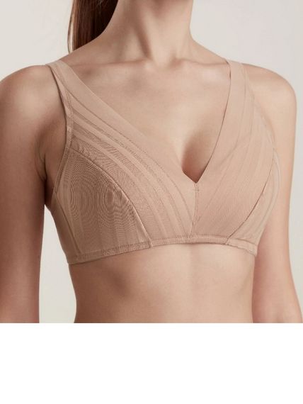 Бюстгальтер из эластичного кружева и эластичного трикотажного полотна.Детали чашек из ламинированного полотна.Бретели регулируются по длине сзади.