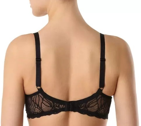Бюстгальтер из трикотажного эластичного полотна и эластичного кружева. Деталь ластовицы на подкладке из трикотажного неэластичного полотна. Чашка на каркасах.