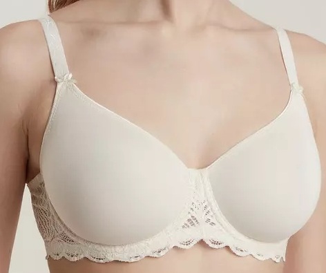 Бюстгальтер из трикотажного эластичного полотна и эластичного кружева. Деталь ластовицы на подкладке из трикотажного неэластичного полотна. Чашка на каркасах.