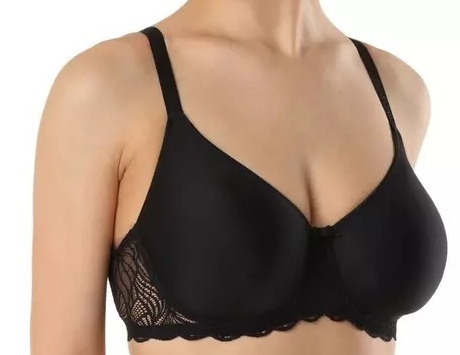 Бюстгальтер из трикотажного эластичного полотна и эластичного кружева. Деталь ластовицы на подкладке из трикотажного неэластичного полотна. Чашка на каркасах.