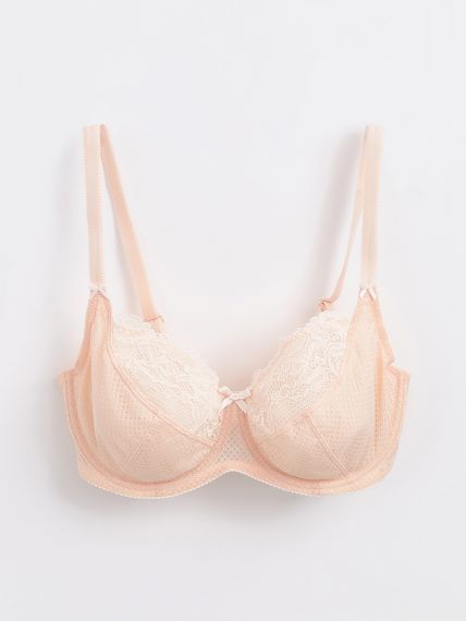 Бюстгальтер из эластичного кружева, эластичного кружевного полотна и эластичного сетчатого полотна. Деталь ластовицы на подкладке из неэластичного полотна. Чашка на каркасах.