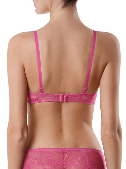 Бюстгальтер из эластичного кружевного полотна. Детали стана на подкладке из эластичного сетчатого полотна. Ластовица на подкладке из неэластичного трикотажного полотна. Чашки формованные, на каркасах.