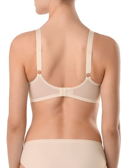 Бюстгальтер Conte Elegant серии SUPREMA RB7020, без косточек с хорошей боковой поддержкой. Бюстгальтер великолепно поддерживает и корректирует форму груди. Высокий уровень комфорта обеспечивают функциональные материалы и выверенные конструкции. Преимущества модели: бюстгальтер без каркасов; - нижние детали чашки из неэластичного жаккардового полотна, ламинированного хлопком; верхняя деталь чашки из кружева на сетчатой подкладке; упругие пластины в боковых деталях стана.