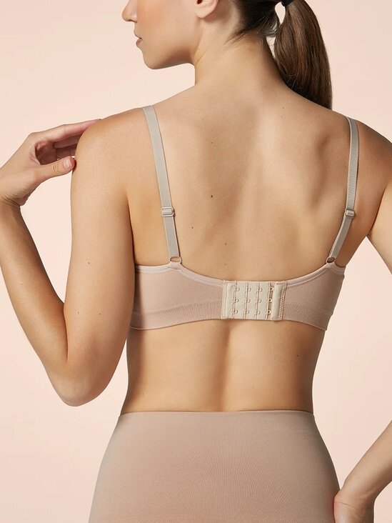 Бюстгальтер анатомического кроя с мягкой чашкой и съемными вставками спереди. Превосходно подстраивается под изменение пропорций тела и создает круговую поддержку груди. Широкая мягкая резинка, регулируемые бретели и удобная застежка на три крючка обеспечивают максимально комфортное облегание. Изготовлен по бесшовной технологии Seamless из высококачественной микрофибры, которая отлично пропускает воздух, обладает нежной текстурой и приятно ощущается, хорошо сохраняет форму и цвет. Практичный и многофункциональный бюстгальтер можно носить в качестве повседневной базы, для дома и сна, а также во время беременности, послеродовой период и для кормления грудью – на бретелях расположены удобные застежки - клипсы, которые позволяют легко отстегнуть чашку одной рукой и быстро накормить малыша.
