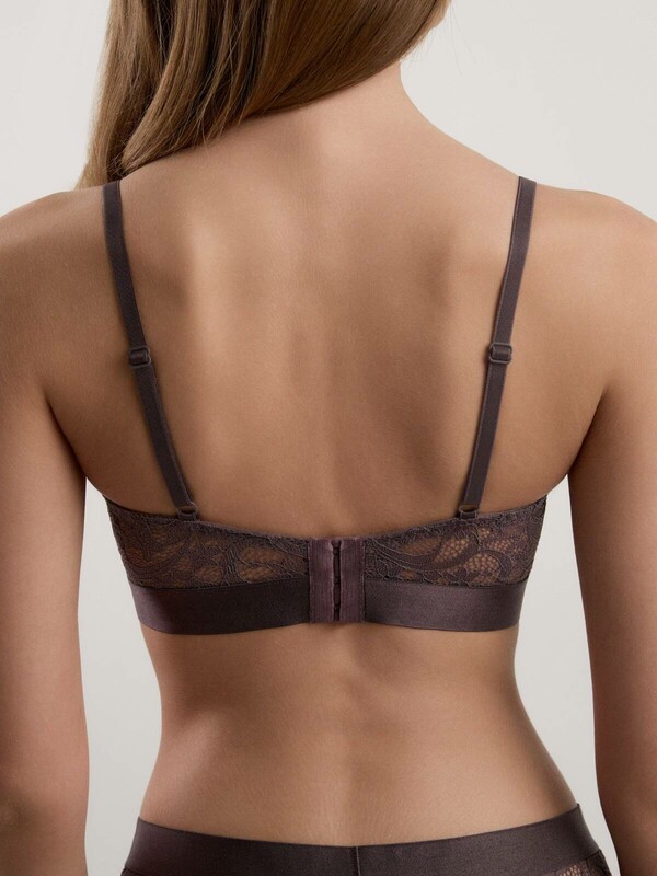 Серия белья Eden из фактурного эластичного кружева с необычными цветочно-растительными мотивами, которое подчеркнуто гладкими тесьмами с атласным блеском, сочетает в себе проверенную посадку с трендовыми акцентами в дизайне:бандо,мягкая чашка с вертикальной вытачкой,на скрытых каркасах,упругие боковые пластины и широкие боковые детали стана,тонкие регулируемые бретели,фактурное кружево в сочетании с атласными тесьмами,удобная посадка и создание округлой формы груди,изящное и соблазнительное белье.