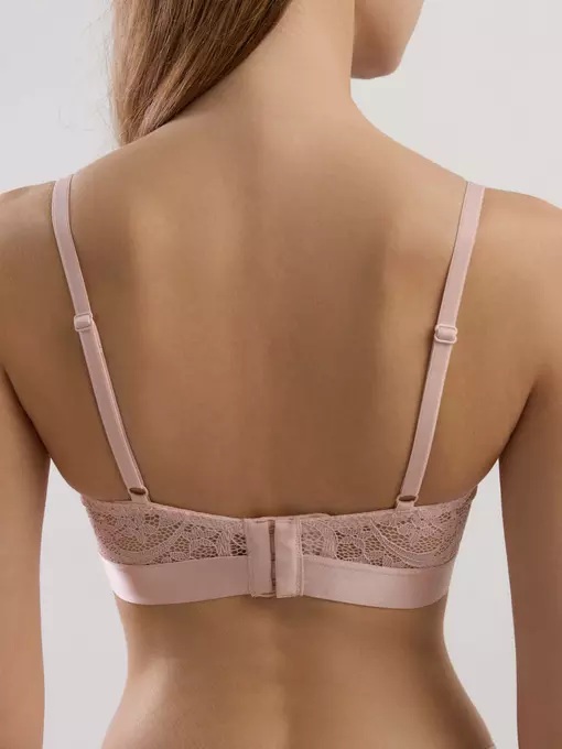 Серия белья Eden из фактурного эластичного кружева с необычными цветочно-растительными мотивами, которое подчеркнуто гладкими тесьмами с атласным блеском, сочетает в себе проверенную посадку с трендовыми акцентами в дизайне:бандо,мягкая чашка с вертикальной вытачкой,на скрытых каркасах,упругие боковые пластины и широкие боковые детали стана,тонкие регулируемые бретели,фактурное кружево в сочетании с атласными тесьмами,удобная посадка и создание округлой формы груди,изящное и соблазнительное белье.