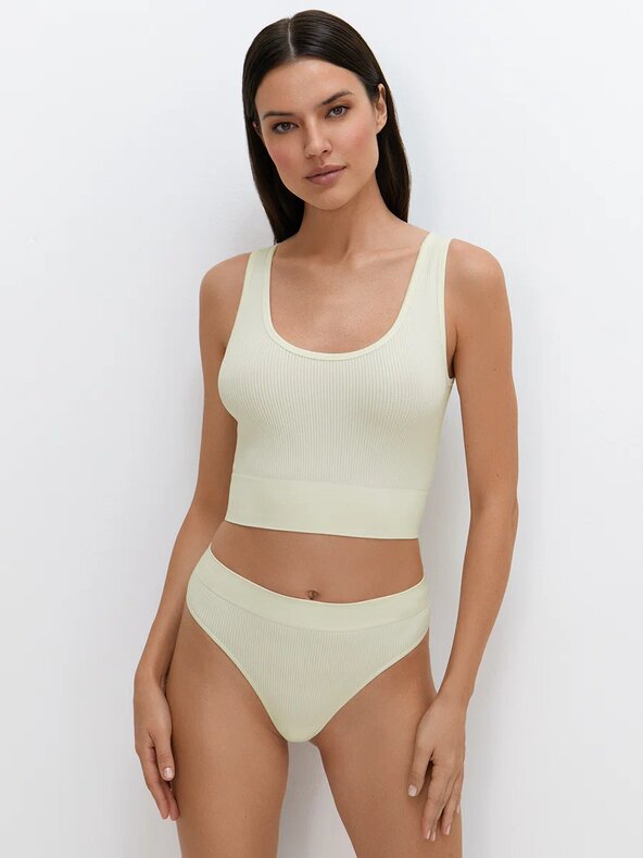 Бесшовный удлиненный топ из микрофибры с вафельным плетением на широких бретелях. В составе - нежный и легкий материал, который приятно ощущается на теле, позволяет коже дышать, впитывает влагу, хорошо сохраняет форму и цвет. Отсутствие застежек и косточек обеспечивает максимальный комфорт. Топ повторяет изгибы тела, превосходно облегает и подчеркивает естественную форму груди. Топ можно носить по-разному: V или U – образным вырезом вперед. Это позволяет комбинировать его с разной одеждой. Модель идеально дополняет бельевой стиль - прозрачные блузки и рубашки, пиджаки, кардиганы и куртки формата оверсайз. Необычная вафельная текстура выглядит оригинально.