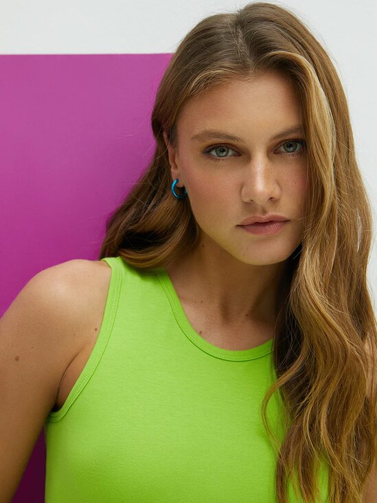 Женский укороченный топ на широких бретелях. Изготовлен из хлопка, который обладает высокой воздухопроницаемостью, отлично впитывает влагу, подходит для чувствительной кожи и приятно ощущается на теле. Добавление эластана обеспечивает превосходное облегание. Стильная и комфортная базовая модель, которая отлично дополнит практический любой образ: спортивный, повседневный или деловой