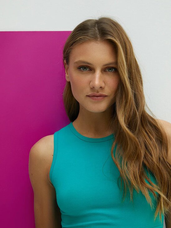 Женский укороченный топ на широких бретелях. Изготовлен из хлопка, который обладает высокой воздухопроницаемостью, отлично впитывает влагу, подходит для чувствительной кожи и приятно ощущается на теле. Добавление эластана обеспечивает превосходное облегание. Стильная и комфортная базовая модель, которая отлично дополнит практический любой образ: спортивный, повседневный или деловой