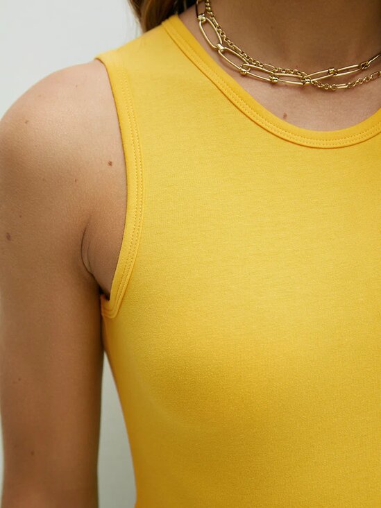 Женский укороченный топ на широких бретелях. Изготовлен из хлопка, который обладает высокой воздухопроницаемостью, отлично впитывает влагу, подходит для чувствительной кожи и приятно ощущается на теле. Добавление эластана обеспечивает превосходное облегание. Стильная и комфортная базовая модель, которая отлично дополнит практический любой образ: спортивный, повседневный или деловой
