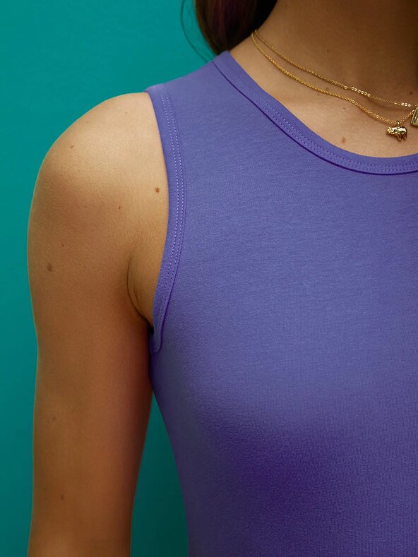 Женский укороченный топ на широких бретелях. Изготовлен из хлопка, который обладает высокой воздухопроницаемостью, отлично впитывает влагу, подходит для чувствительной кожи и приятно ощущается на теле. Добавление эластана обеспечивает превосходное облегание. Стильная и комфортная базовая модель, которая отлично дополнит практический любой образ: спортивный, повседневный или деловой