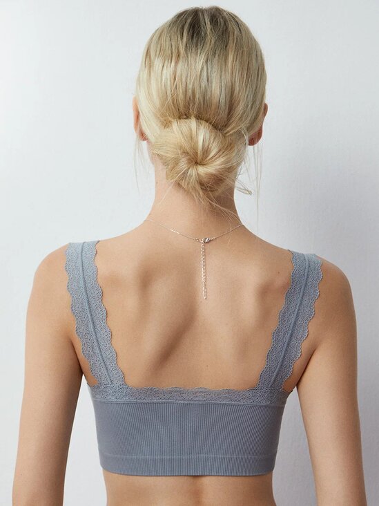Комфортный топ в рубчик на широких кружевных бретелях со съемными формованными вкладышами. Верх лифа обработан ажурным кружевом с изящным цветочным рисунком. Изготовлен по бесшовной технологии Seamless из мягкой микрофибры, которая отлично пропускает воздух и обладает нежной текстурой. Топ превосходно облегает и приятно ощущается на теле благодаря отсутствию боковых швов. Хорошо сохраняет форму и цвет. Удобная вывязанная резинка обеспечивает надежную поддержку. Элегантный топ можно носить в качестве повседневного нижнего белья