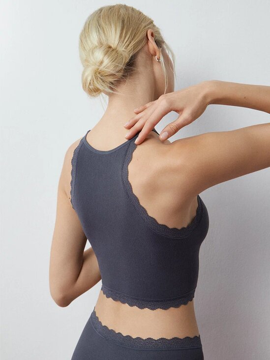 Комфортная укороченная майка MINIMI Mi 1221S French Chic в рубчик на тонких бретелях. Пройма и низ обработаны ажурным кружевом с изящным цветочным рисунком. Изготовлена по бесшовной технологии из мягкой микрофибры, которая отлично пропускает воздух и обладает нежной текстурой. Хорошо сохраняет форму и цвет. Майка превосходно облегает и приятно ощущается на теле благодаря отсутствию боковых швов.