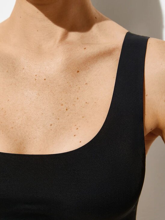 Базовый топ на широких бретелях со съемными формованными вкладышами. Изящно подчеркивает грудь и придает ей округлую форму. Изготовлен из гладкой микрофибры по прогрессивной технологии с использованием плоского клеевого шва и термоклеевой обработки края. Материал обладает высокой воздухопроницаемостью, приятно ощущается на теле, хорошо сохраняет форму и цвет. Передняя часть топа на подкладке дополнена съемными вкладышами. Топ превосходно облегает благодаря мягкой усиленной резинке, обеспечивает комфортную поддержку и создает эффект «второй кожи».
