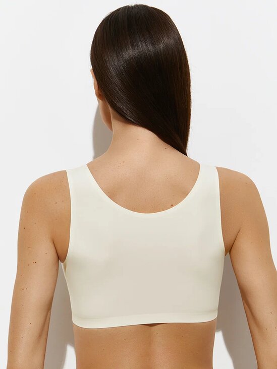 Базовый топ на широких бретелях с закрытой спиной и съемными формованными вкладышами. Подчеркивает грудь, придает ей изящную округлую форму и создает женственный силуэт. Изготовлен из гладкой микрофибры по прогрессивной технологии с использованием плоского клеевого шва и термоклеевой обработки края. Материал обладает высокой воздухопроницаемостью, приятно ощущается на теле, хорошо сохраняет форму и цвет. Передняя часть топа на подкладке дополнена съемными вкладышами. Топ превосходно облегает благодаря мягкой усиленной резинке, обеспечивает комфортную поддержку и создает эффект «второй кожи», Универсальный топ отлично подходит для создания повседневных и спортивных образов, дома и отдыха.