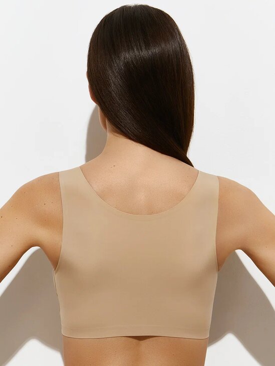 Базовый топ на широких бретелях с закрытой спиной и съемными формованными вкладышами. Подчеркивает грудь, придает ей изящную округлую форму и создает женственный силуэт. Изготовлен из гладкой микрофибры по прогрессивной технологии с использованием плоского клеевого шва и термоклеевой обработки края. Материал обладает высокой воздухопроницаемостью, приятно ощущается на теле, хорошо сохраняет форму и цвет. Передняя часть топа на подкладке дополнена съемными вкладышами. Топ превосходно облегает благодаря мягкой усиленной резинке, обеспечивает комфортную поддержку и создает эффект «второй кожи», Универсальный топ отлично подходит для создания повседневных и спортивных образов, дома и отдыха.