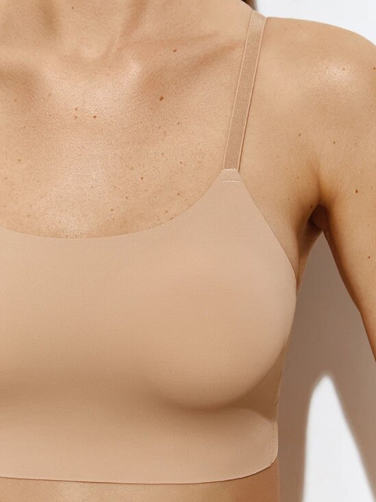 Стильный топ на тонких регулируемых бретелях со съемными мягкими формованными вкладышами и оригинальным дизайном спины. Эффектно подчеркивает грудь и придает ей изящную округлую форму. Изготовлен из гладкой микрофибры с добавлением эластичной сетки по прогрессивной технологии с использованием плоского клеевого шва и термоклеевой обработки края. Материал обладает высокой воздухопроницаемостью, приятно ощущается, хорошо сохраняет форму и цвет. Передняя часть топа выполнена на подкладке и дополнена съемными вкладышами. Топ превосходно облегает и обеспечивает комфортную поддержку. Необычный дизайн спины смотрится оригинально и привлекает внимание.