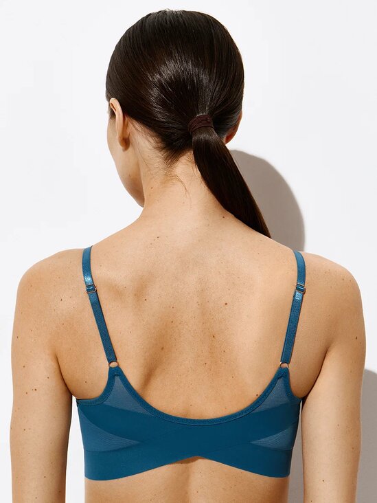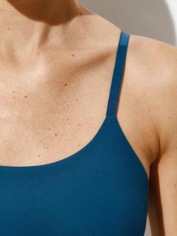 Стильный топ на тонких регулируемых бретелях со съемными мягкими формованными вкладышами и оригинальным дизайном спины. Эффектно подчеркивает грудь и придает ей изящную округлую форму. Изготовлен из гладкой микрофибры с добавлением эластичной сетки по прогрессивной технологии с использованием плоского клеевого шва и термоклеевой обработки края. Материал обладает высокой воздухопроницаемостью, приятно ощущается, хорошо сохраняет форму и цвет. Передняя часть топа выполнена на подкладке и дополнена съемными вкладышами. Топ превосходно облегает и обеспечивает комфортную поддержку. Необычный дизайн спины смотрится оригинально и привлекает внимание.