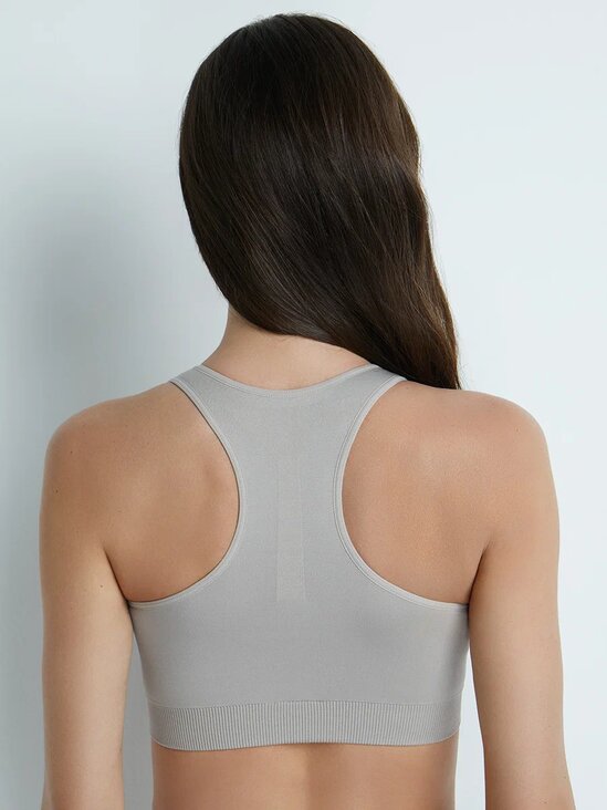 Женский спортивный топ на широких бретелях. Изготовлен из мягкой микрофибры, которая отлично пропускает воздух, впитывает влагу и приятно ощущается на теле. Благодаря специальной технологии Seamless и отсутствию боковых швов, топ превосходно облегает и об