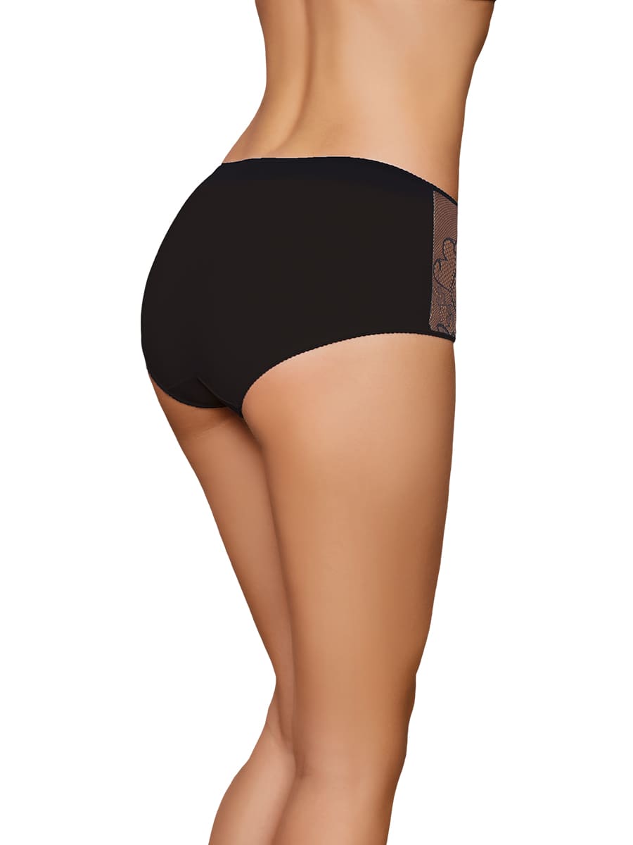Комфортные трусы-макси с высокой посадкой из качественного хлопка и изящными кружевными вставками на бочках по передней части. Элегантное кружево с цветочным орнаментом придает модели изысканный вид.