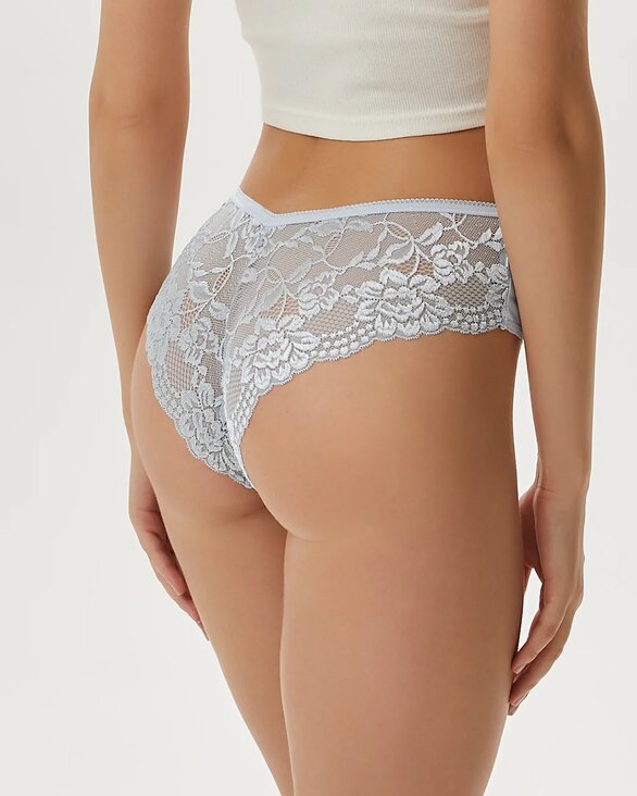 Трусы-бразилиано выполнены из высокогигиеничного хлопка в сочетании с мягким, эластичным кружевом с цветочным орнаментом, которое деликатно подчеркивает женственность. Максимальный комфорт при носке, используемый хлопок не подвержен деформации и пилингу. Края изделий обработаны мягкими эластиками с кружевными фестонами.