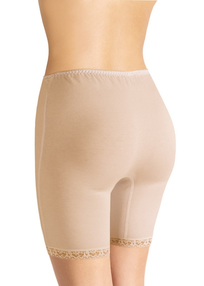 Трусы - панталоны на эластичном полотне с содержанием хлопка (кулирка). По талии резинка с фестоном. По ноге узкое кружево.