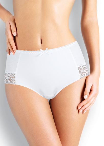 Модель-макси из однотонного трикотажного полотна с легким утягивающим эффектом имеет отрезной бочок с кружевной вставкой. По ножкам выполнена обработка кантом, по талии - резинкой с фестоном.Дизайн завершается небольшим атласным бантом.