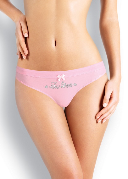 Трусы стринги из однотонного трикотажного полотна с принтом, по талии -широкий пояс с эластичной тесьмой внутри